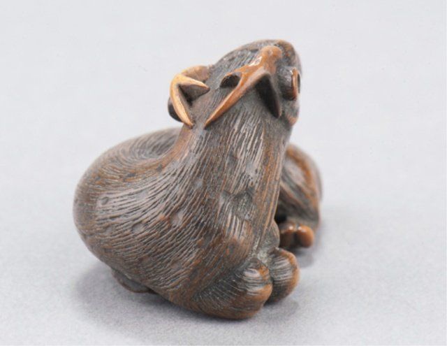We are able to ship Netsuke from our gallery for this auction. Unfortunately we will not be able to ship any ivory to areas where its import is forbidden by law. Shipping ability and cost is contingent upon destination, insurance, and weight of the package. We charge an additional handling fee of 10/box.