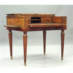 mahogany, Louis XVI, France, gilded brass decor fittings, height 83 cm, 89 x 71 cm; damages and veneer damages