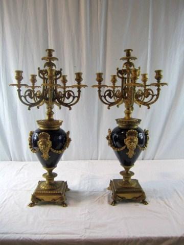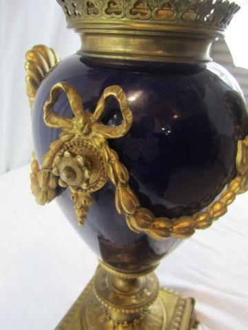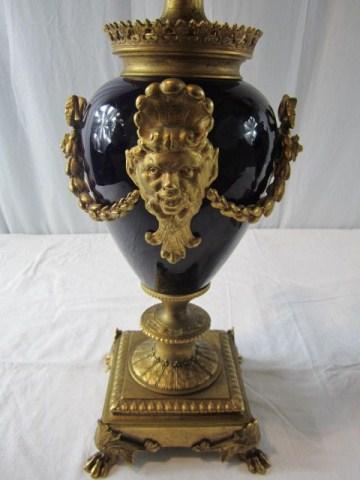 Porcelain and bronze with swag and masks. Measures 31" tall. Estimate $3,000 - $4,000