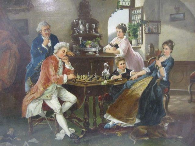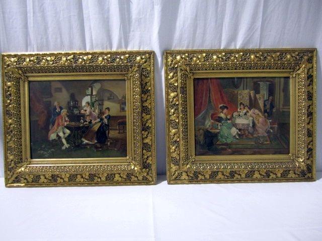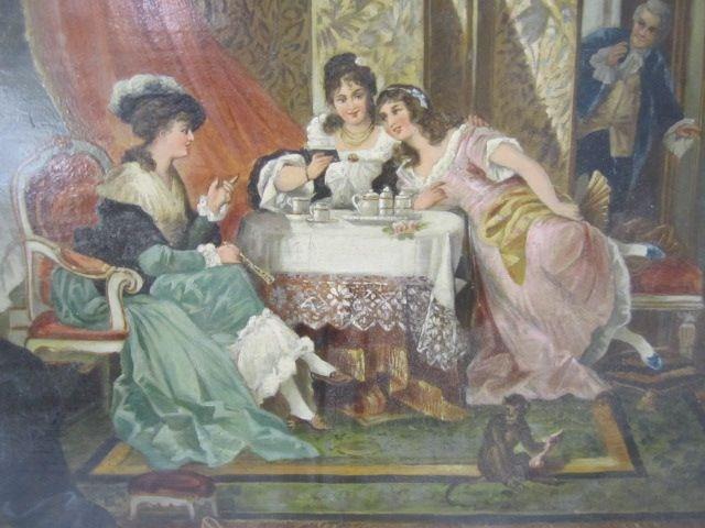 Of salon scenes with gilt wood frame. Measures 22" x 25". Estimate $3,000 - $4,000.