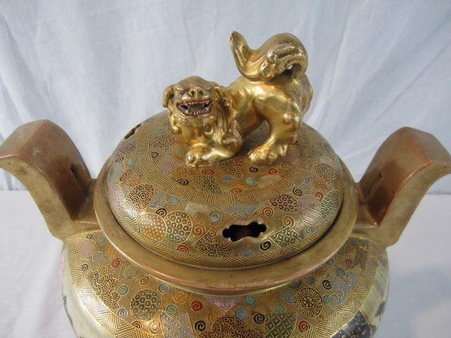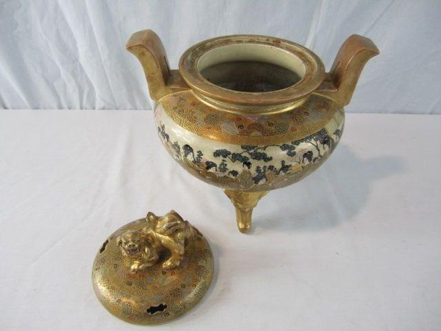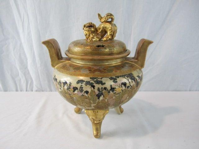 Dragon on lid. Circa 1880. Shows age and small chip on rim. Measures 12" tall x 11" across. Estimate $800 - $1,200