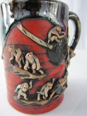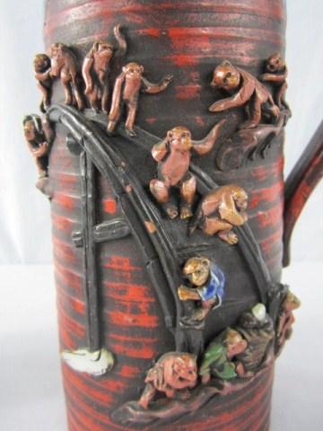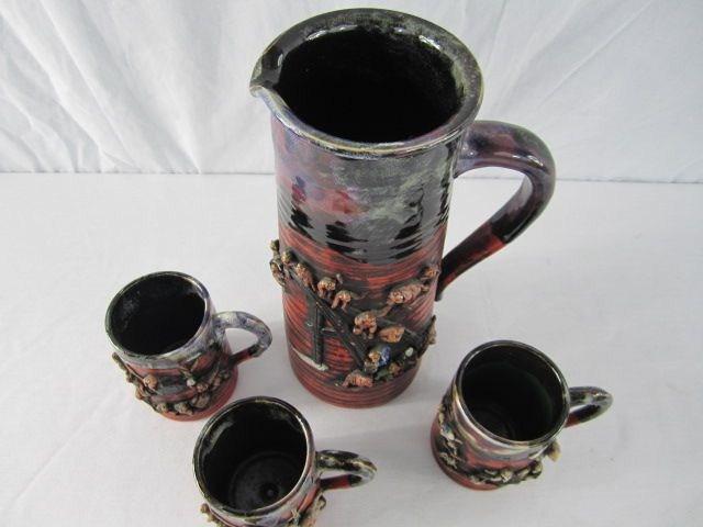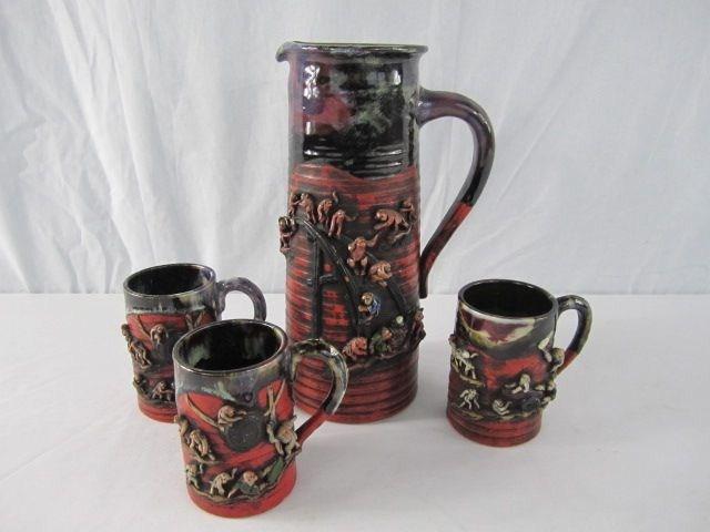 Circa 1880. All in good condition. Pitcher measures 12 1/4" tall and mugs measure 4 3/4" tall. Estimate $800 - $1,200