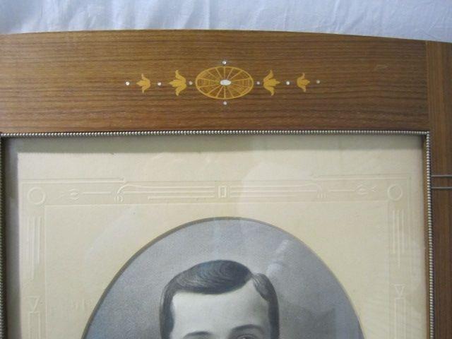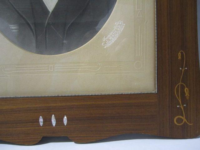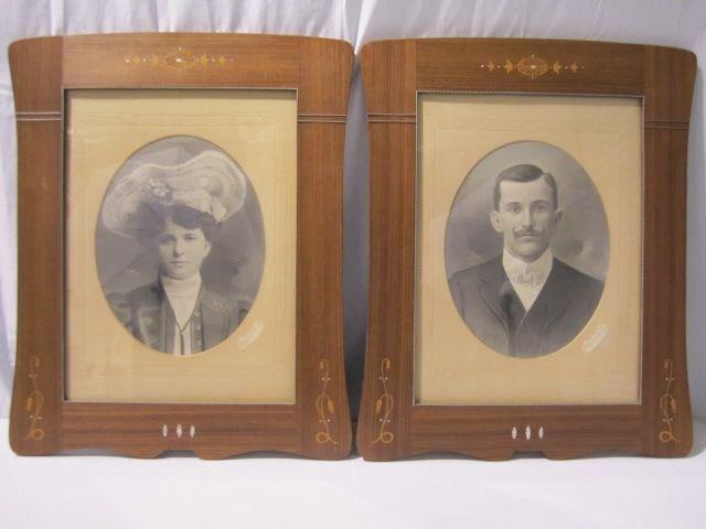 Exceptional quality. Probably husband and wife. Fabulous frames appear to be mahogany inlaid detail in wood and fantastic mother of pearl. Embossed mattig with probably framers mark "Kunstanstalz" J. Maurer Wein Vi Bruckencasses.