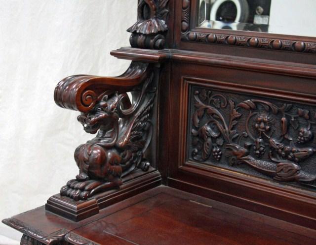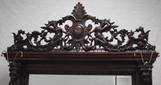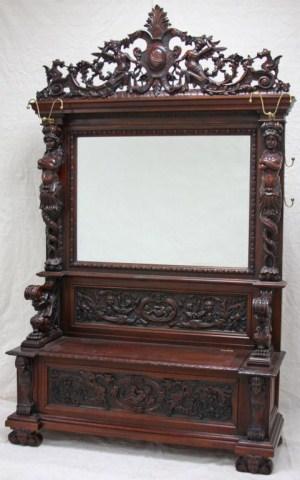 With bench seat and beveled glass mirror. Measures 94" tall x 65" wide. Estimate $2,000 - $4,000