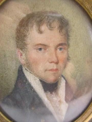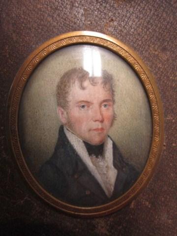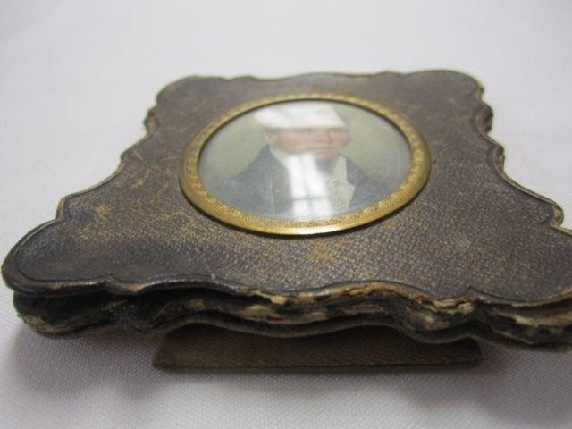 Renowned painter of battle scenes from the war of 1812. Well known marine painter in original leather frame. Portrait may have been done by Boilly of France. Measures 3 3/4" x 3 1/2". Estimate $300 - $500