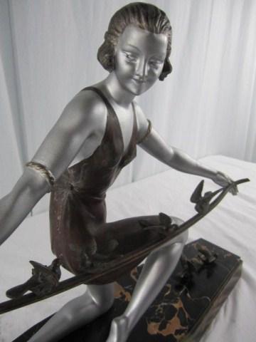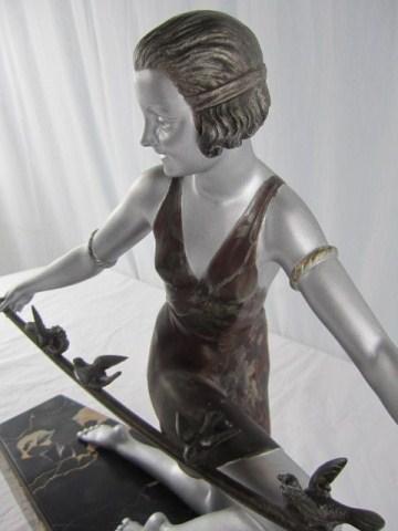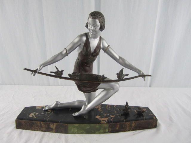 Girl with birds. Made of spelter. Circa 1920's. Signed G. Arisse. Measures 18" tall. Estimate $1,000 - $1,500
