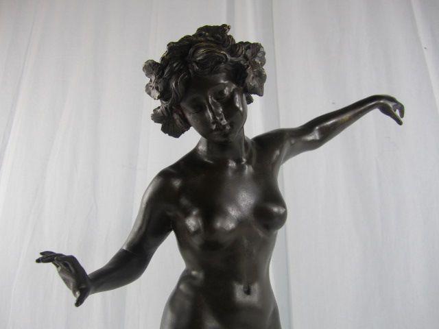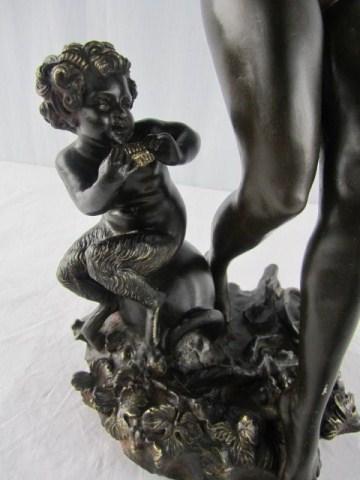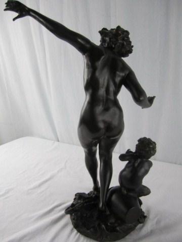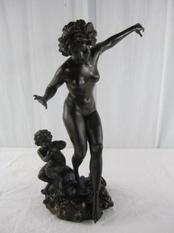 With nymph at her feet. Cast in bronze with A. Moreau signature. Measures 23" tall. Estimate $2,000 - $2,500