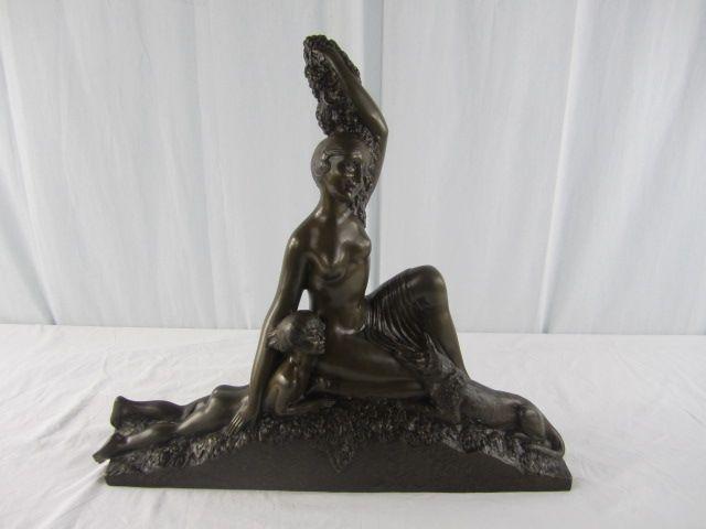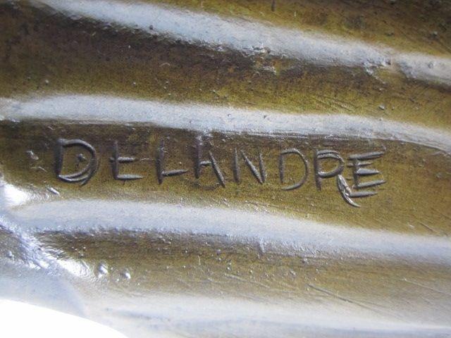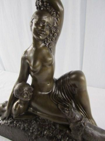 Girl with small boy and dog. Signed "De Landre". Circa 1920's. Measures 22" tall. Estimate $2,500 - $3,000