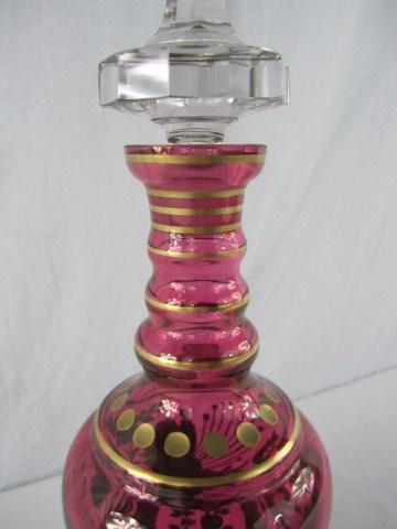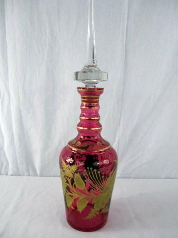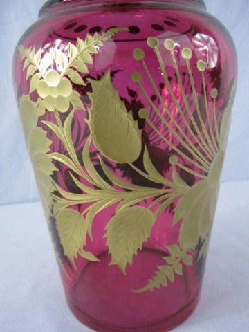 With gold wash cranberry color. In good condition. Measures 22" tall. Estimate $100 - $300