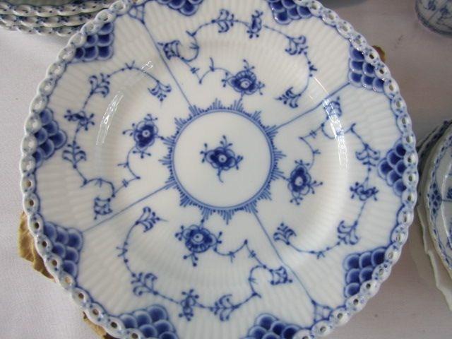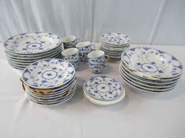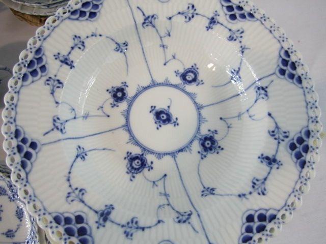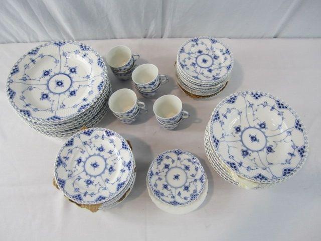 "Blue Fluted Open Lace" pattern. Includes vinyl boxes. One cup has small chip. Estimate $2,000 - $3,000
