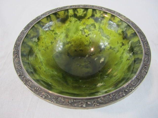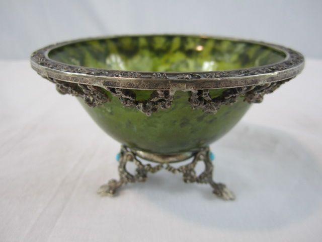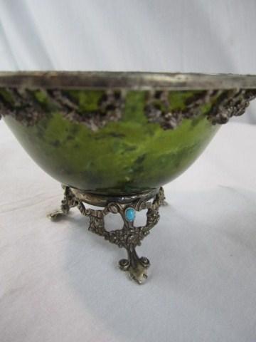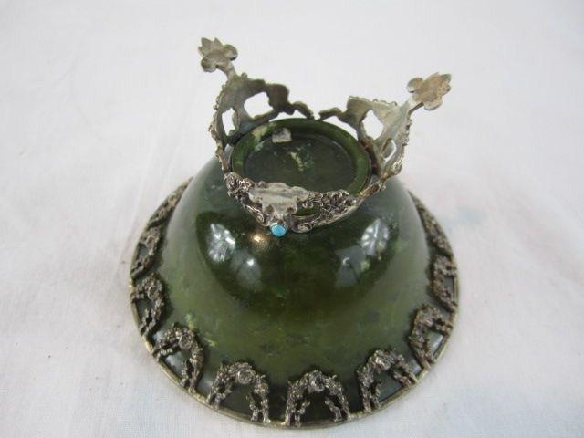With turquoise stone on feet. Measures 2 1/2" tall x 4 1/4" diameter. Estimate $400 - $600