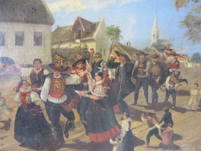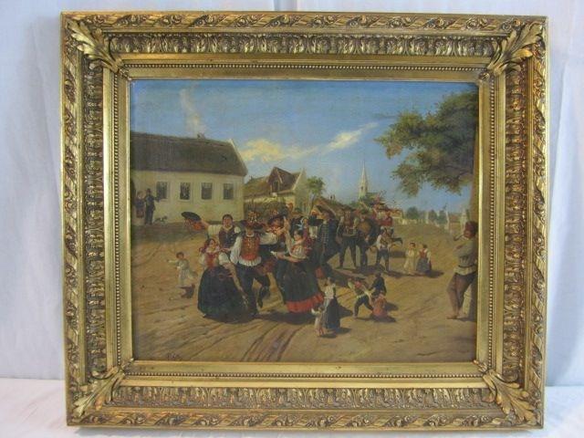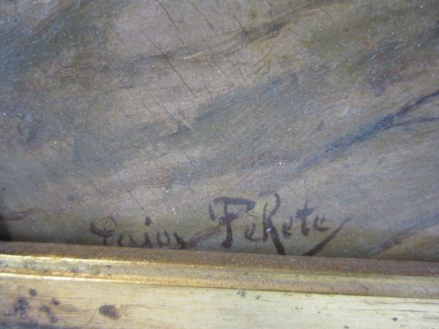 Dancing people. Signed Lajor Ferete. Multiple repairs on canvas. Measure 25" x 22". Estimate $1,500 - $2,000