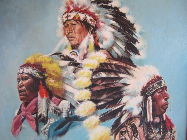 3 Indians. Measures 38" x 32". Estimate $1,000 - $1,500