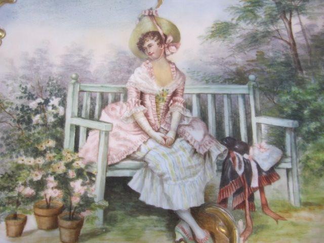 Girl sitting on a bench. Measures 14 1/2" diameter. Estimate $300 - $600