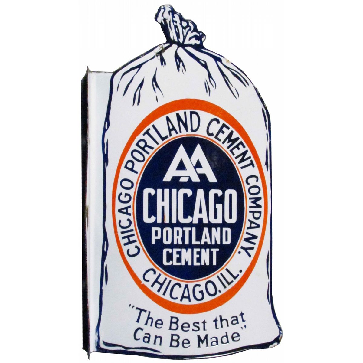 AA Chicago Portland Cement Porcelain Flange Sign. A few minor chips otherwise Very Good Condition. Approx. 16 X 30 inches.