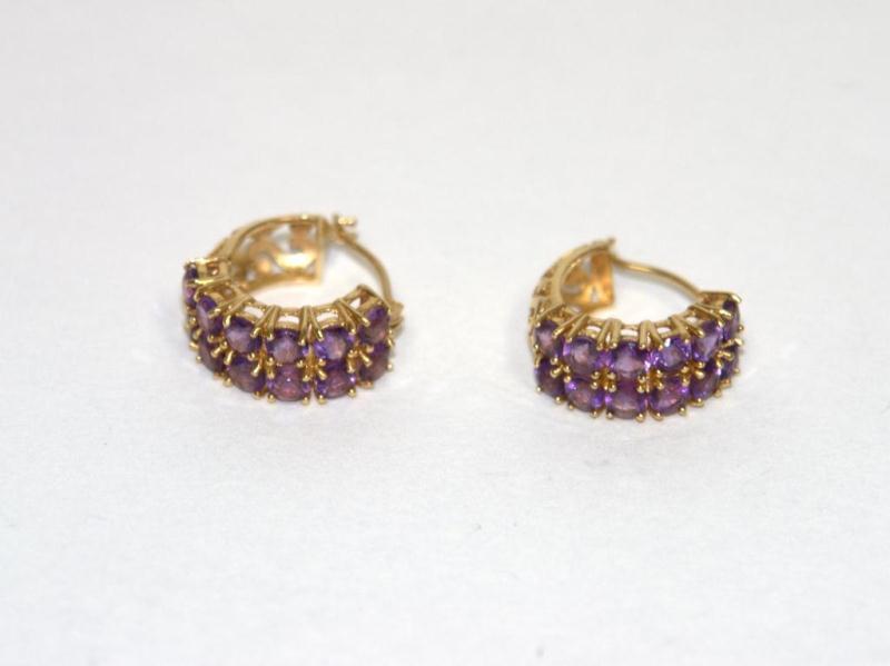 Total Retail $1,620 14Kt Yellow Gold -- (#1) Retail Price $1,620 14Kt Yellow Gold -- AAA Amethyst Hand Made Ladies Hoops Earrings --