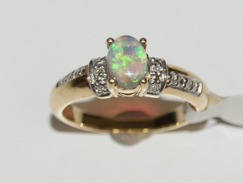 Total Retail $2,990 14Kt Yellow Gold (#1) Retail Price $2,990 14Kt Yellow Gold AAA Australian Opal & Diamond Hand Made Ring