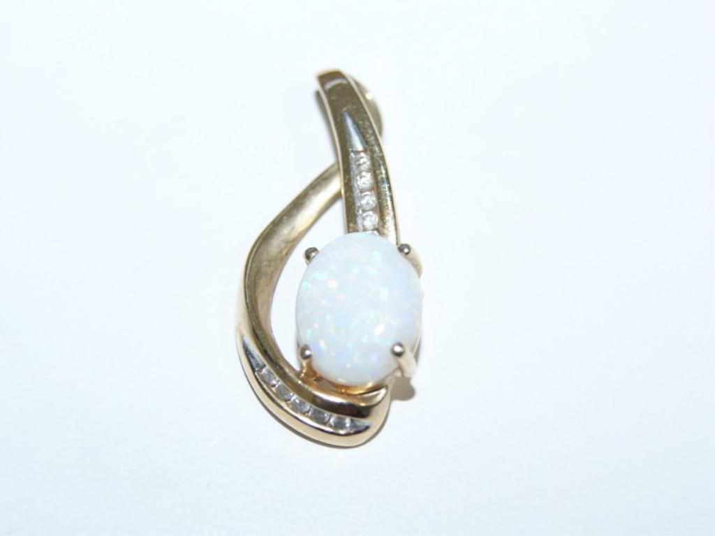 LVA 14 Karat Yellow Gold (#1) LVA 14 Karat Yellow Gold AAA Australian Opal & Diamonds Hand Made Pendant
