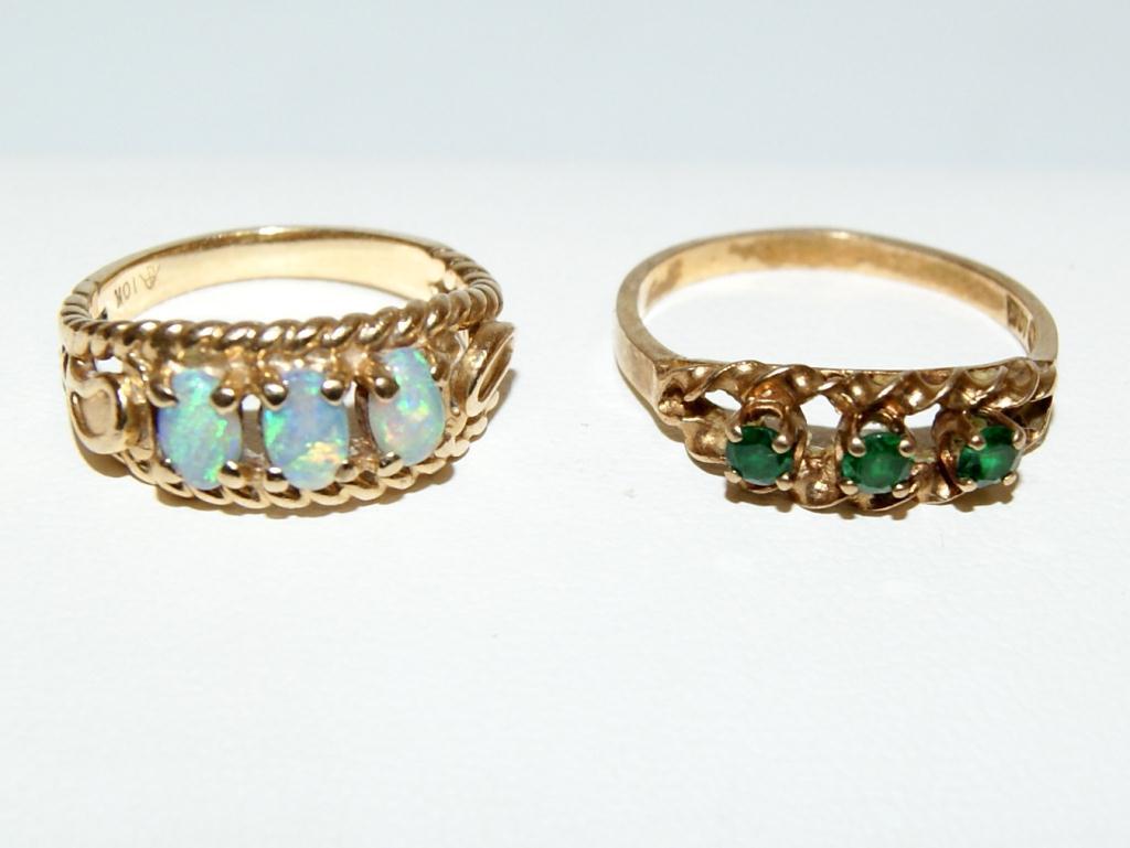 Total Retail $3,190 10Kt Yellow Gold -- Being Sold Times Money -- (#1) Retail Price $1,870 10Kt Yellow Gold -- AAA Australian Opal Hand Made Ladies Ring -- (#2) Retail Price $1,320 10Kt Yellow Gold -- AAA Colombian Emerald Hand Made Ladies Ring --