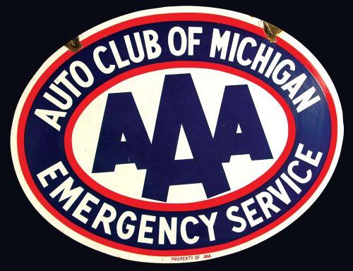 AAA Auto Club of Michigan Emergency Service Porcelain Sign, two sided. One side excellent the other has minor scratches and ships at grommets. 30 X 23 inches.