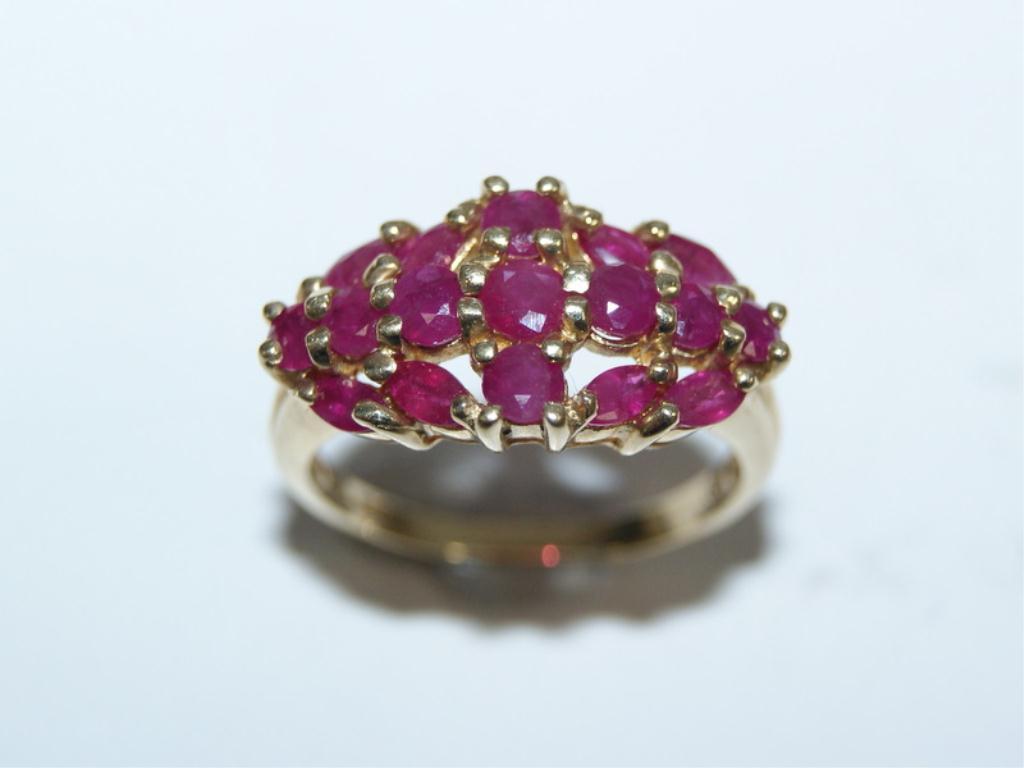 LVA 10 Karat Yellow Gold (#1) LVA 10 Karat Yellow Gold AAA Burmese Ruby Cluster Hand Made Ladies Ring