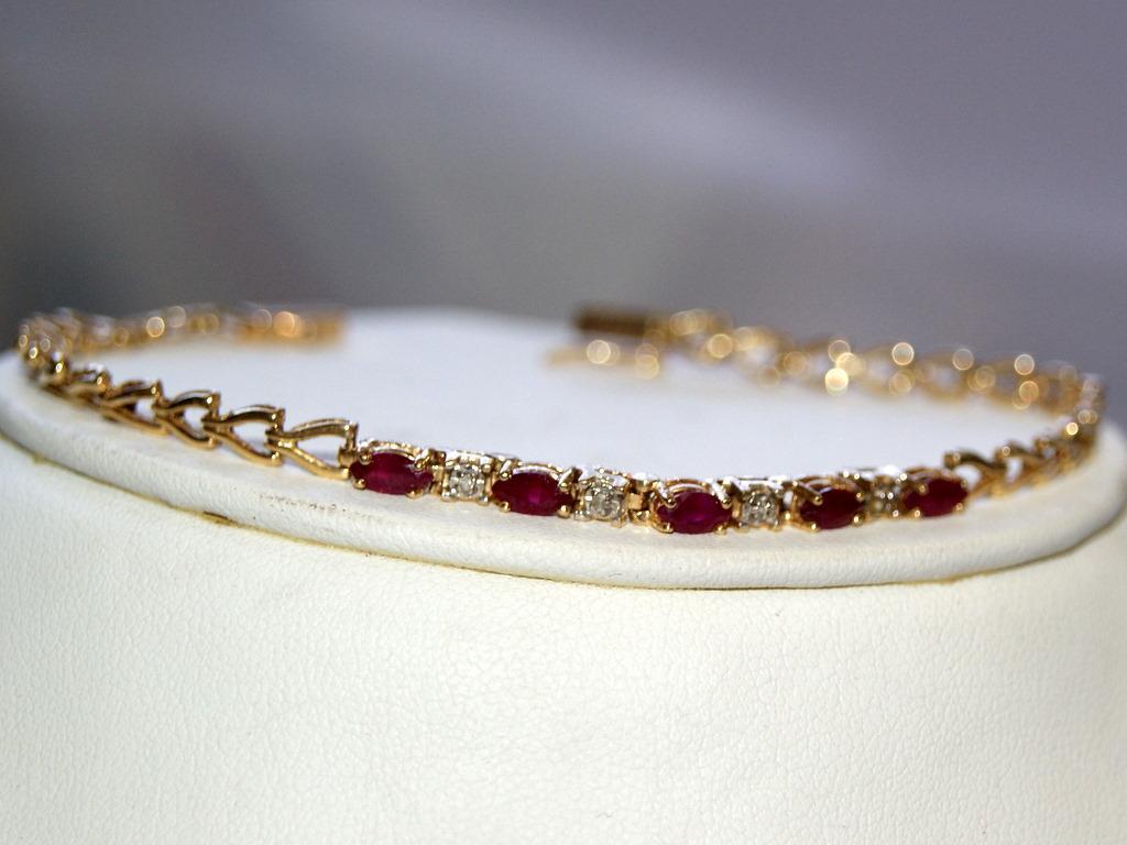 Total Retail $2,740 14Kt Yellow Gold (#1) Retail Price $2,740 14Kt Yellow Gold AAA Burmese Ruby & Diamond Tennis Bracelet