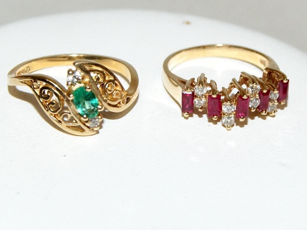 Total Retail $3,810 14Kt Yellow Gold -- Being Sold Times Money -- (#1) Retail Price $1,940 14Kt Yellow Gold -- AAA Burmese Ruby & Diamonds Hand Made Ladies Ring-- (#2) Retail Price $1,870 14Kt Yellow Gold -- AAA Colombian Emerald & Diamonds Ladies Ring --