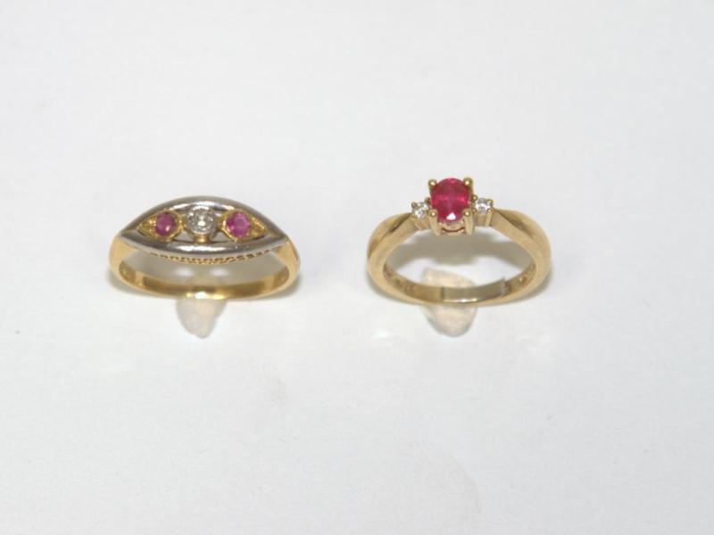 Total Retail $3,430 14Kt Yellow Gold -- Being Sold Times Money -- (#1) Retail Price $1,790 14Kt Yellow Gold -- AAA Burmese Ruby Oval & Diamonds Ladies Ring -- (#2) Retail Price $1,640 14Kt Yellow Gold -- Diamonds & Burmese Ruby Hand Made Ladies Ring --