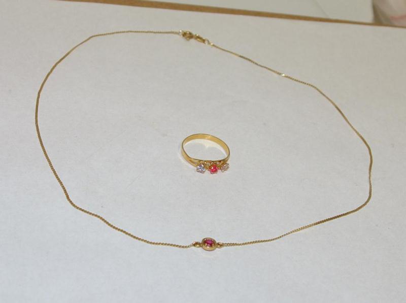 Total Retail $2,400 14Kt Yellow Gold -- Being Sold Times Money -- (#1) Retail Price $1,250 14Kt Yellow Gold -- AAA Burmese Ruby Hand made Ladies Necklace -- (#2) Retail Price $1,150 14Kt Yellow Gold -- Chatham Ruby & White Gemstone Ladies Ring --