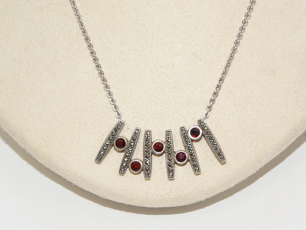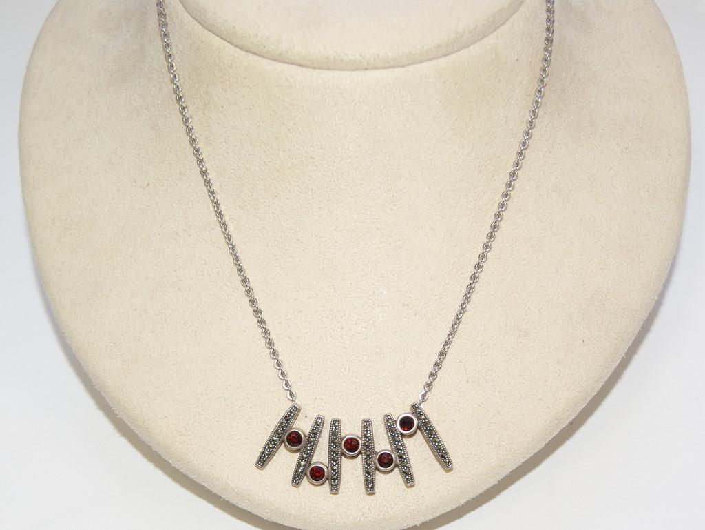 Total Retail $1,210 .925 Silver (#1) Retail Price $1,210 .925 Silver AAA Chatham Ruby & Marcasite Ladies Necklace