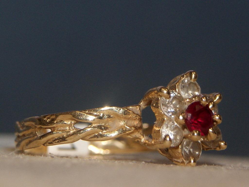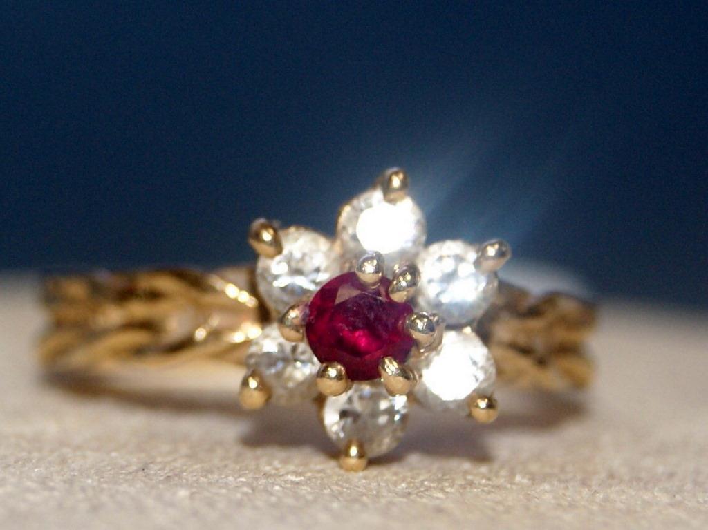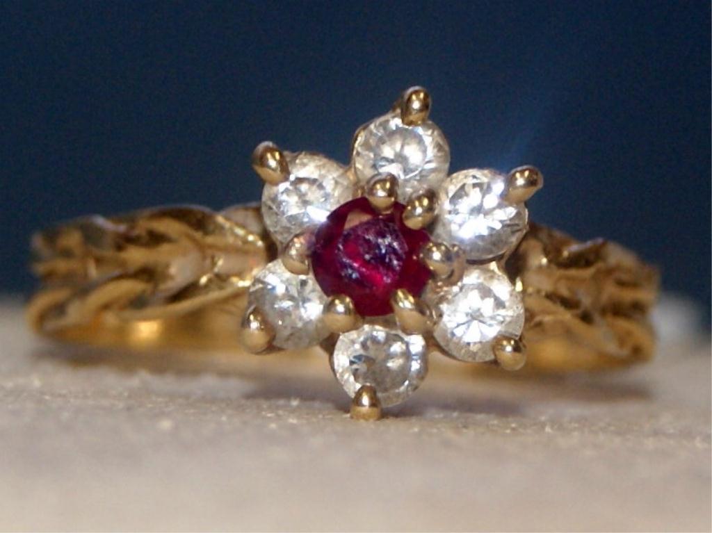 Total Retail $1,870 14Kt Yellow Gold (#1) Retail Price $1,870 14Kt Yellow Gold AAA Chatham Ruby & White Gemstone Ring