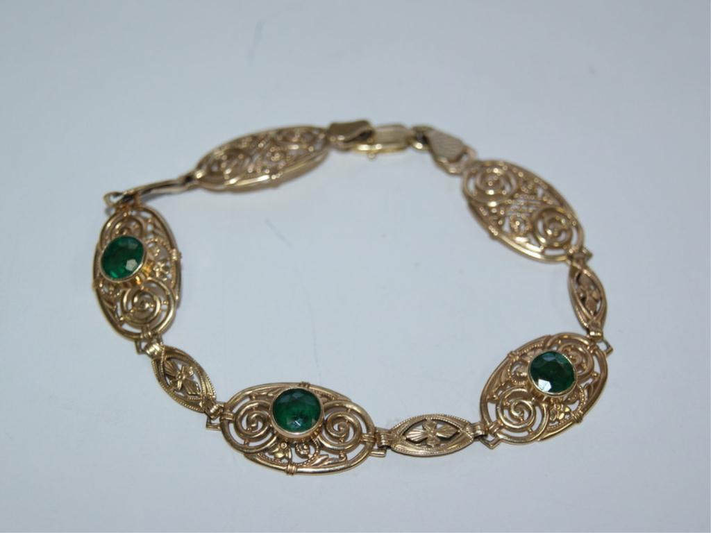 Total Retail $4,830 14Kt Yellow Gold (#1) Retail Price $4,830 14Kt Yellow Gold AAA Colombian Emerald Hand Made Ladies Bracelet