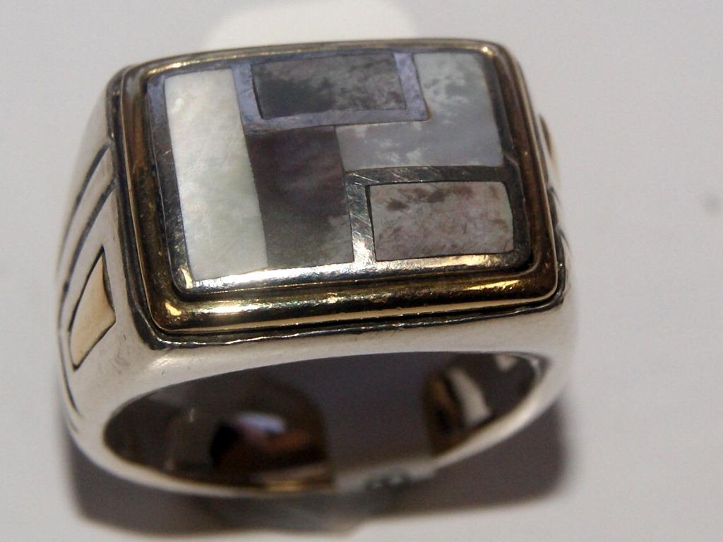Total Retail $1,210 .925 Silver & 18Kt Gold (#1) Retail Price $1,210 .925 Silver & 18Kt Gold AAA Mother Of Pearl Two Tone Men's Ring