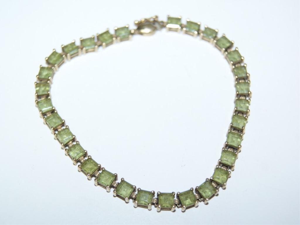 LVA 10 Karat Yellow Gold (#1) LVA 10 Karat Yellow Gold AAA Peridot Princess Hand Made Ladies Tennis Bracelet
