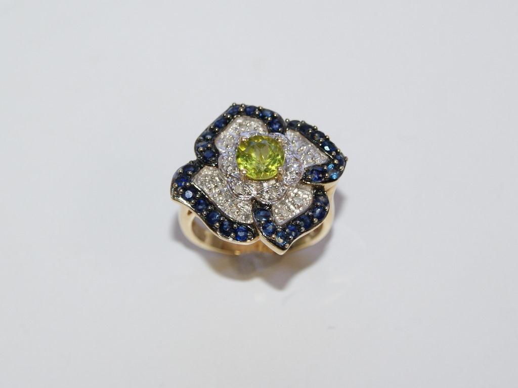 AAA Peridot, Sapphires & Diamond Ladies Ring