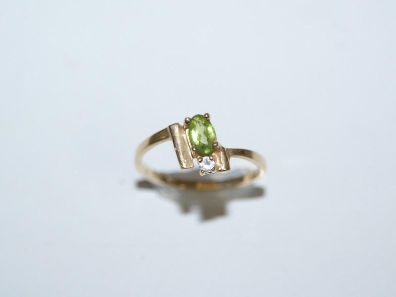 LVA 10 Karat Yellow Gold (#1) LVA 10 Karat Yellow Gold AAA Peridot & White Gemstone Hand Made Ladies Ring