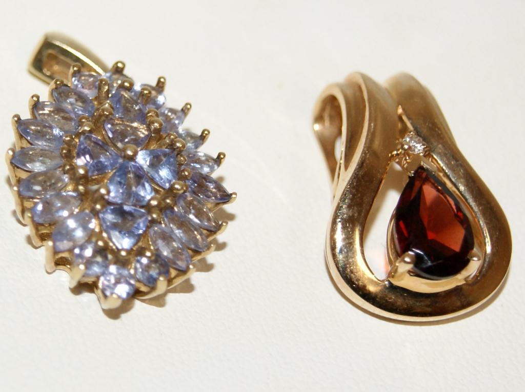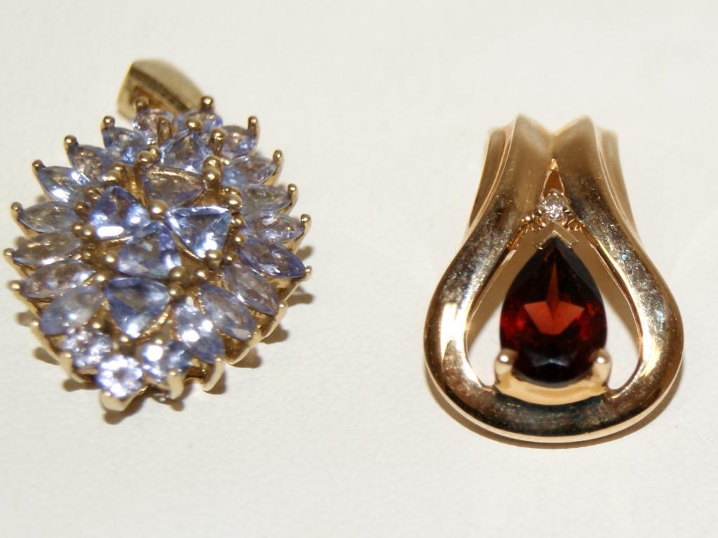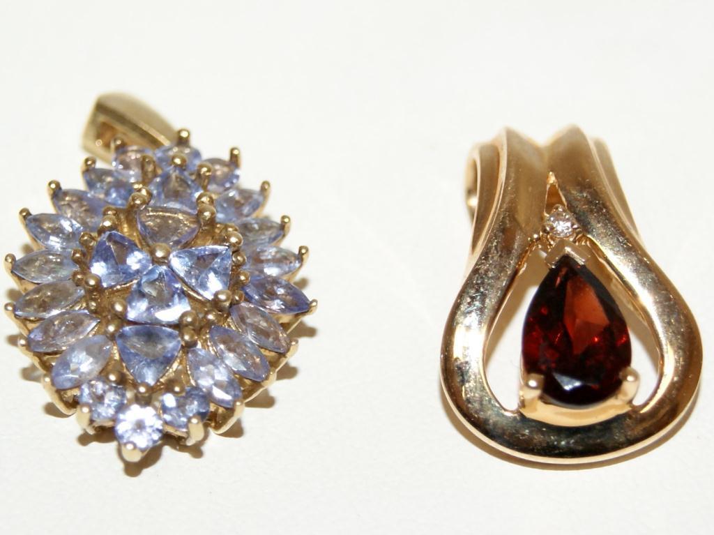 Total Retail $5,710 10Kt & 14Kt Yellow Gold Being Sold Times Money (#1) Retail Price $2,920 14Kt Yellow Gold AAA Tanzanite Cluster Hand Made Ladies pendant (#2) Retail Price $2,790 10Kt Yellow Gold AAA Garnet & Diamonds Ladies Slide Pendant