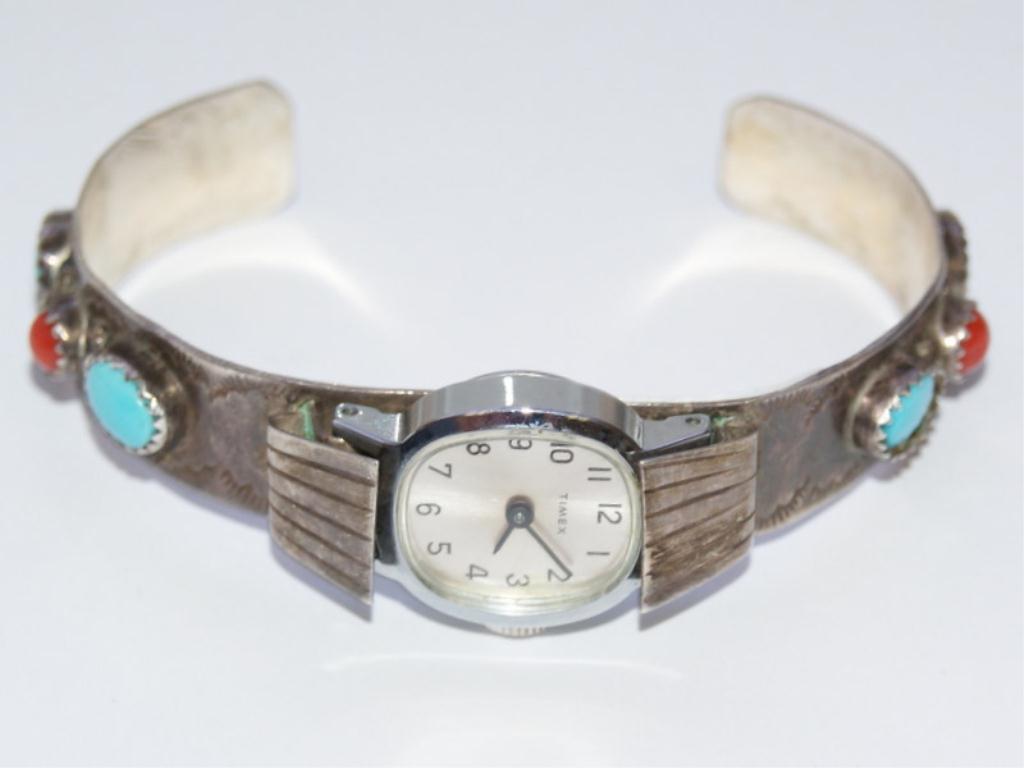 AAA Turquoise & Coral Navajo Design Timex Watch