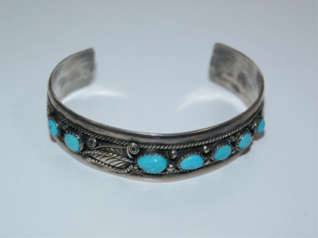 Total Retail $1,270 .925 Silver (#1) Retail Price $1,270 .925 Silver AAA Turquoise Navajo Sign Hand Made Ladies Bangle