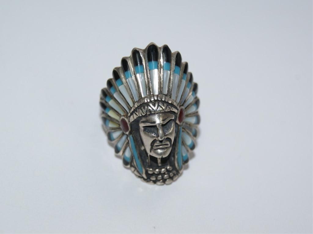 Total Retail $1,160 .925 Silver (#1) Retail Price $1,160 .925 Silver AAA Turquoise, Onyx & Mother Of Pearl Indian Design Ring