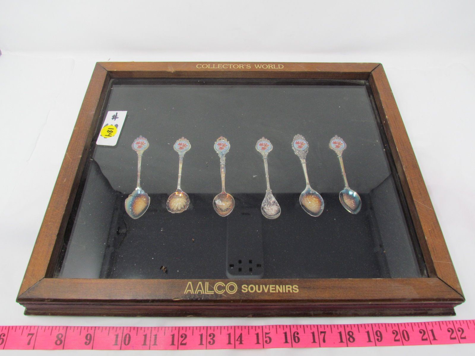 AALCO SOUVENIR SPOONS INGLASS FRONTED WOOD CASE