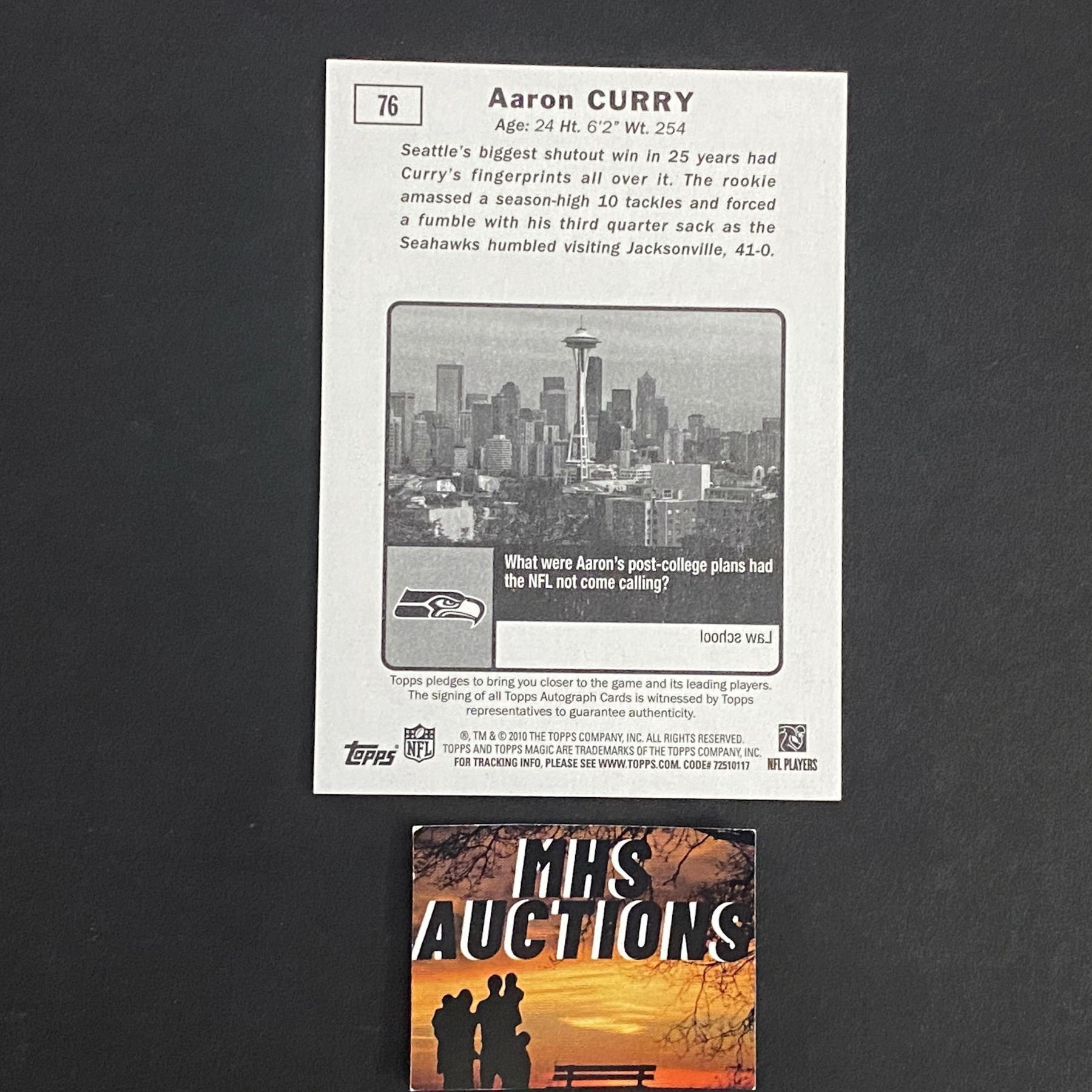 AARON CURRY 2010 TOPPS FOOTBALL AUTOGRAPH CARD