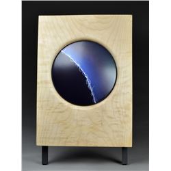 Bigleaf maple, ebony, mineral crystal inlay, colorfast dyes, lacquer finish. Lid secured wit