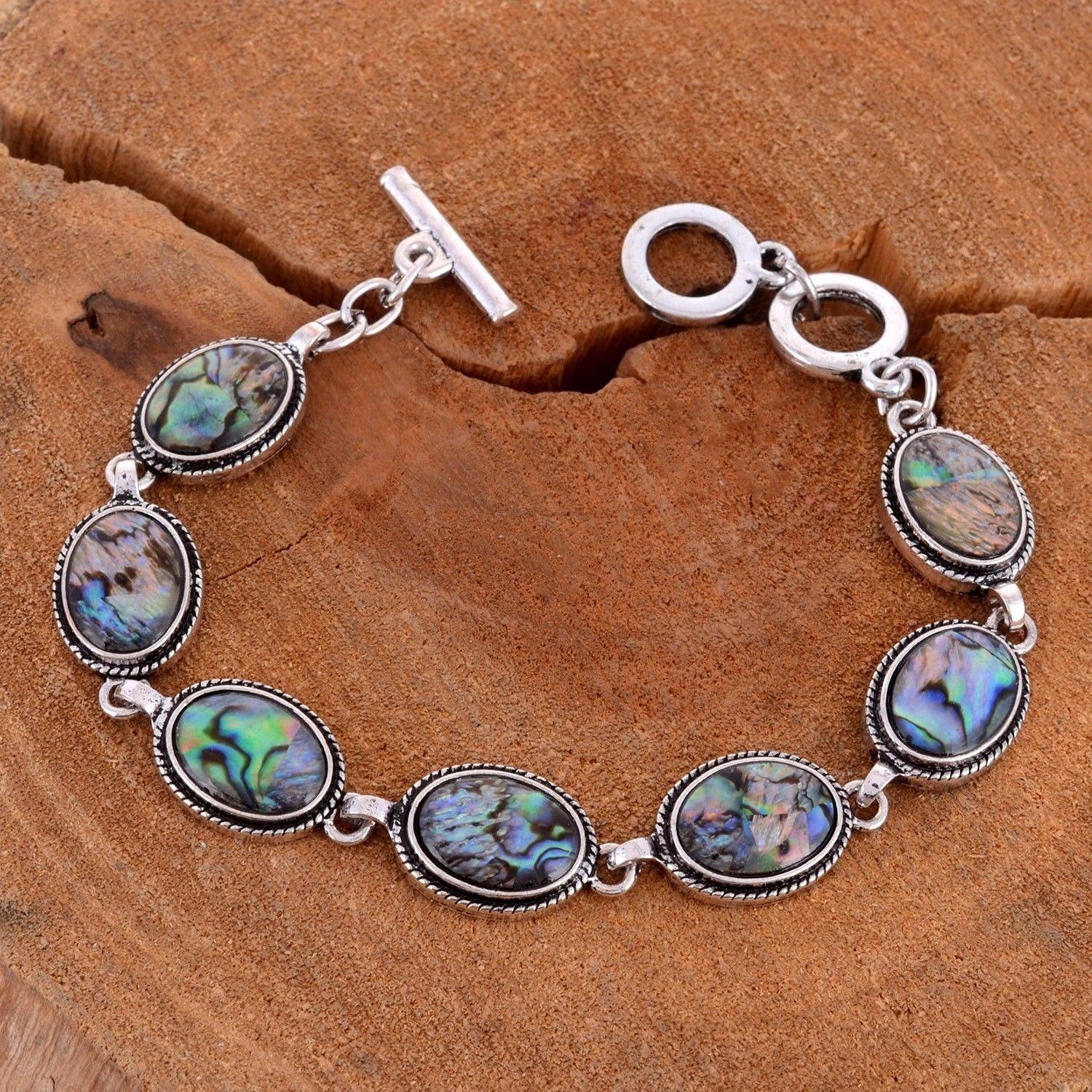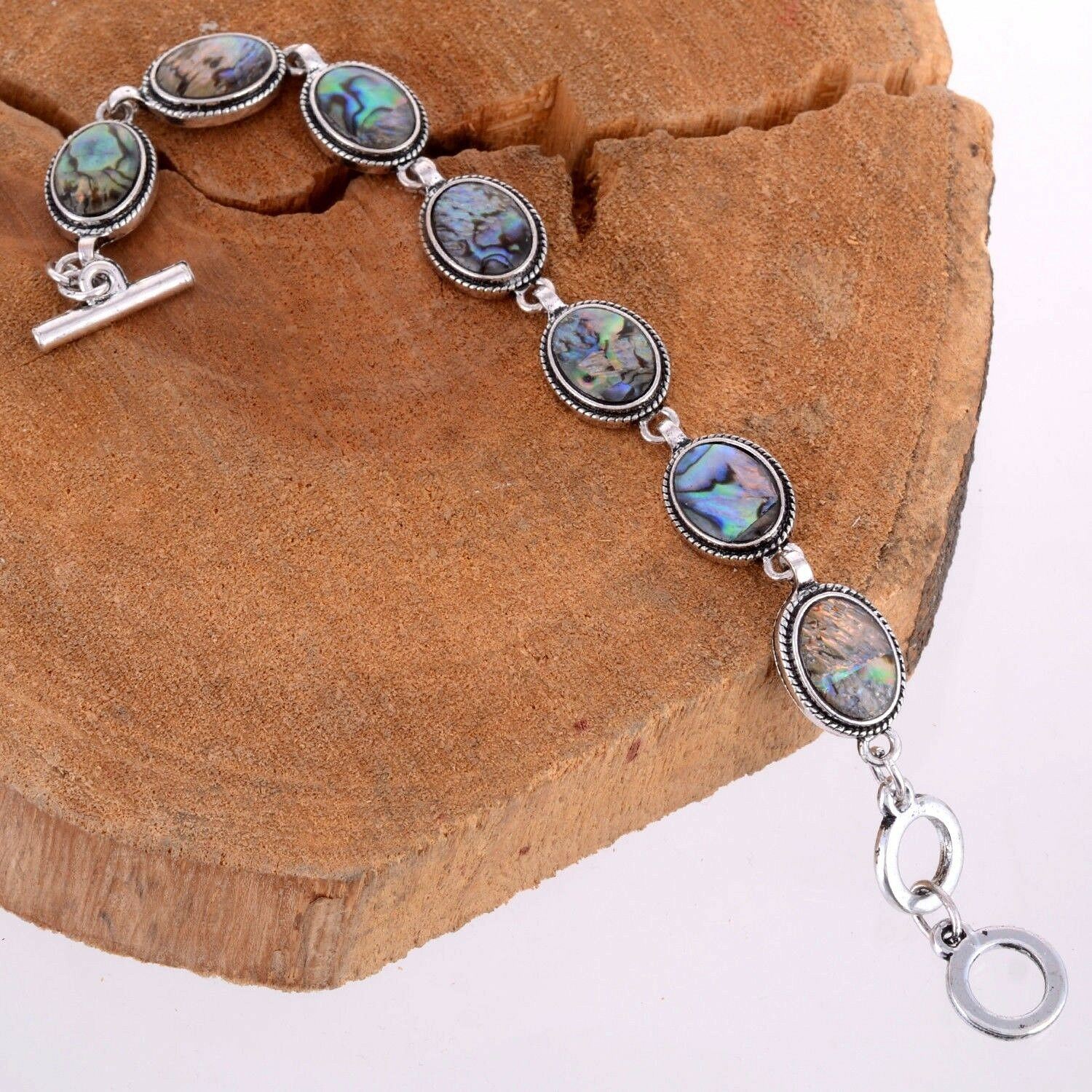 ABALONE SHELL GEMSTONE SILVER PLATED BRACELET , JEWELRY TYPE : BRACELET , BRACELET LENGTH : 8 INCHES (WITH ADJUSTABLE LINKS) , BRACELET WEIGHT : 17.80 Grams