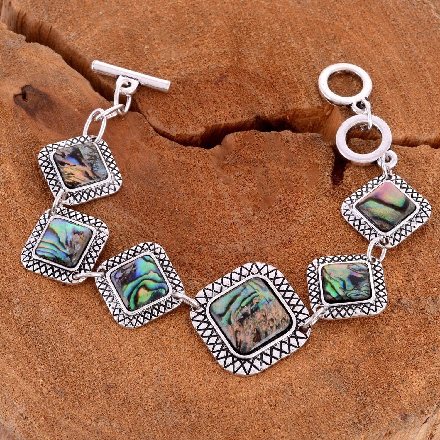 ABALONE SHELL GEMSTONE SILVER PLATED BRACELET , JEWELRY TYPE : BRACELET , BRACELET LENGTH : 8 INCHES (WITH ADJUSTABLE LINKS) , BRACELET WEIGHT : 16.80 Grams