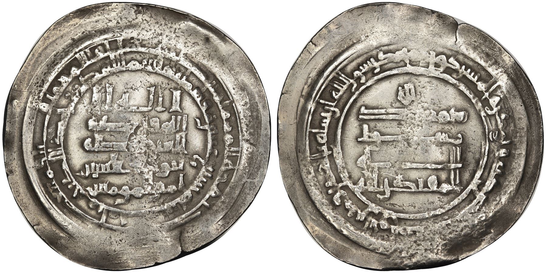 ABBASID: Abu Al-Fadl Ja'far Al-Muqtadir Billah (908-932), silver dirham (3.26g), Arrajan mint, AH 317. Struck on a very broad flan and possibly a donative dirham. A-246.2. Very fine. Rare.