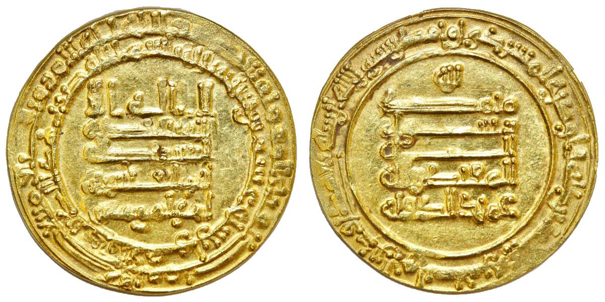 ABBASID: Al-Muqtadir (908-932), AV Dinar (3.58g), Al-Ahwaz, AH 320. Citing the vizier 'Amid Al-Dawla. A-245. Choice extremely fine to about uncirculated.