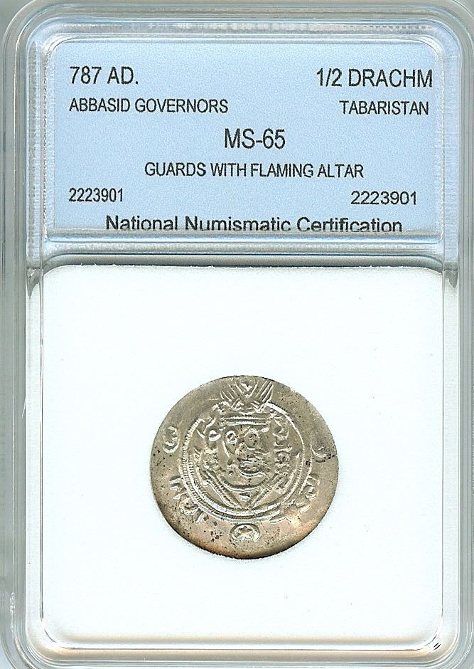 ABBASID GOVERNORS OF TABARISTAN 1/2 DRACHM - GUARDS W/ALTAR REV. - NNC MS65