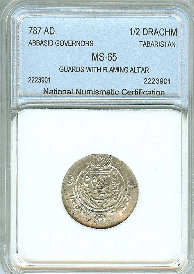 ABBASID GOVERNORS OF TABARISTAN 1/2 DRACHM - GUARDS W/ALTAR REV. - NNC MS65