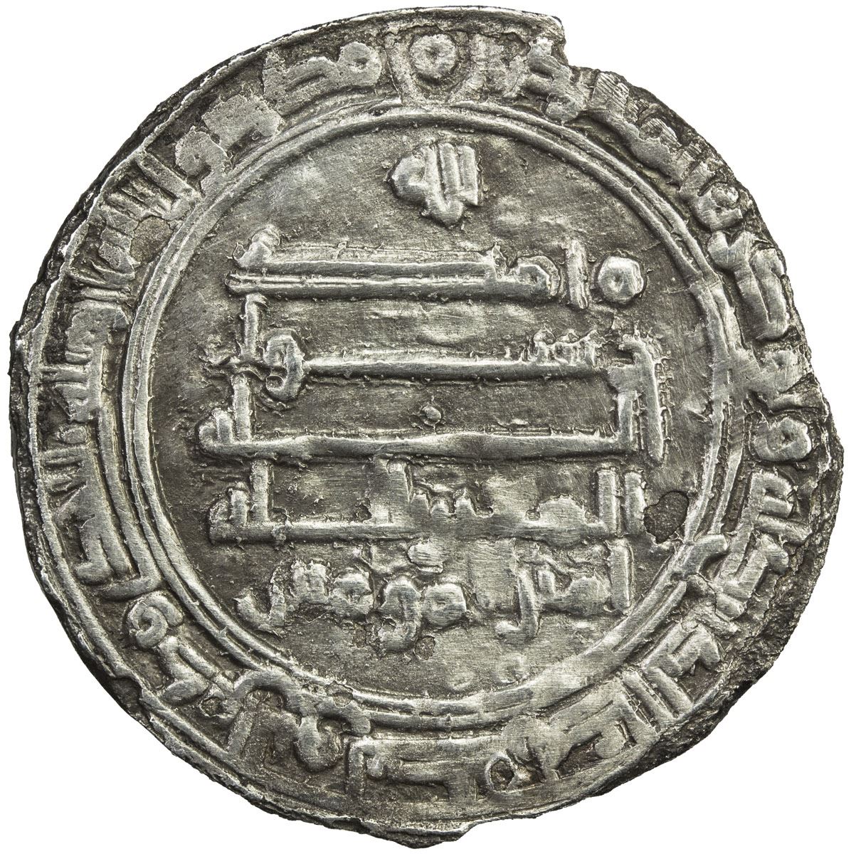ABBASID: al-Mu'tazz, 866-869, AR dirham (2.70g), Arminiya, AH255, A-236.1, Vard-99, without heir, a type struck only at Arminiya in 254 & 255, when all other mints added the caliphal heir 'Abd Allah, VF to EF, RR.